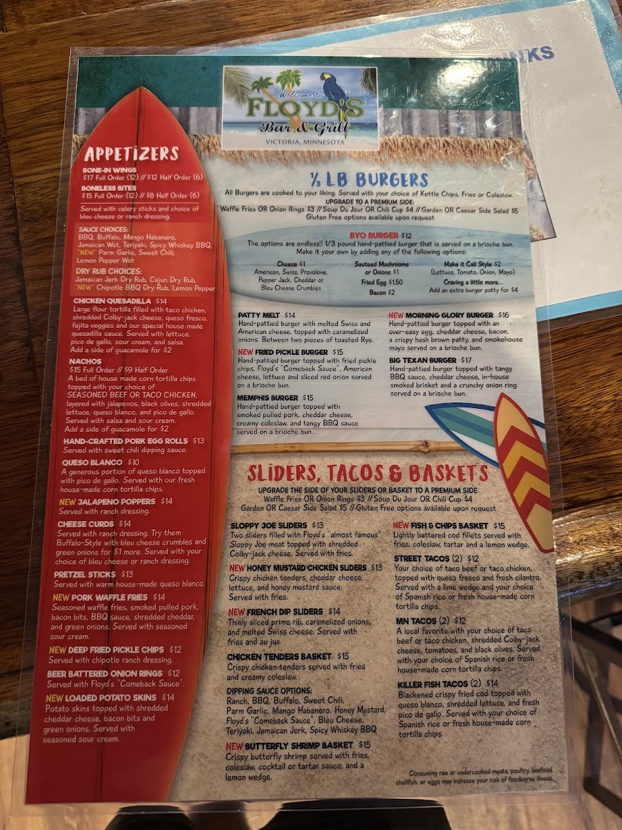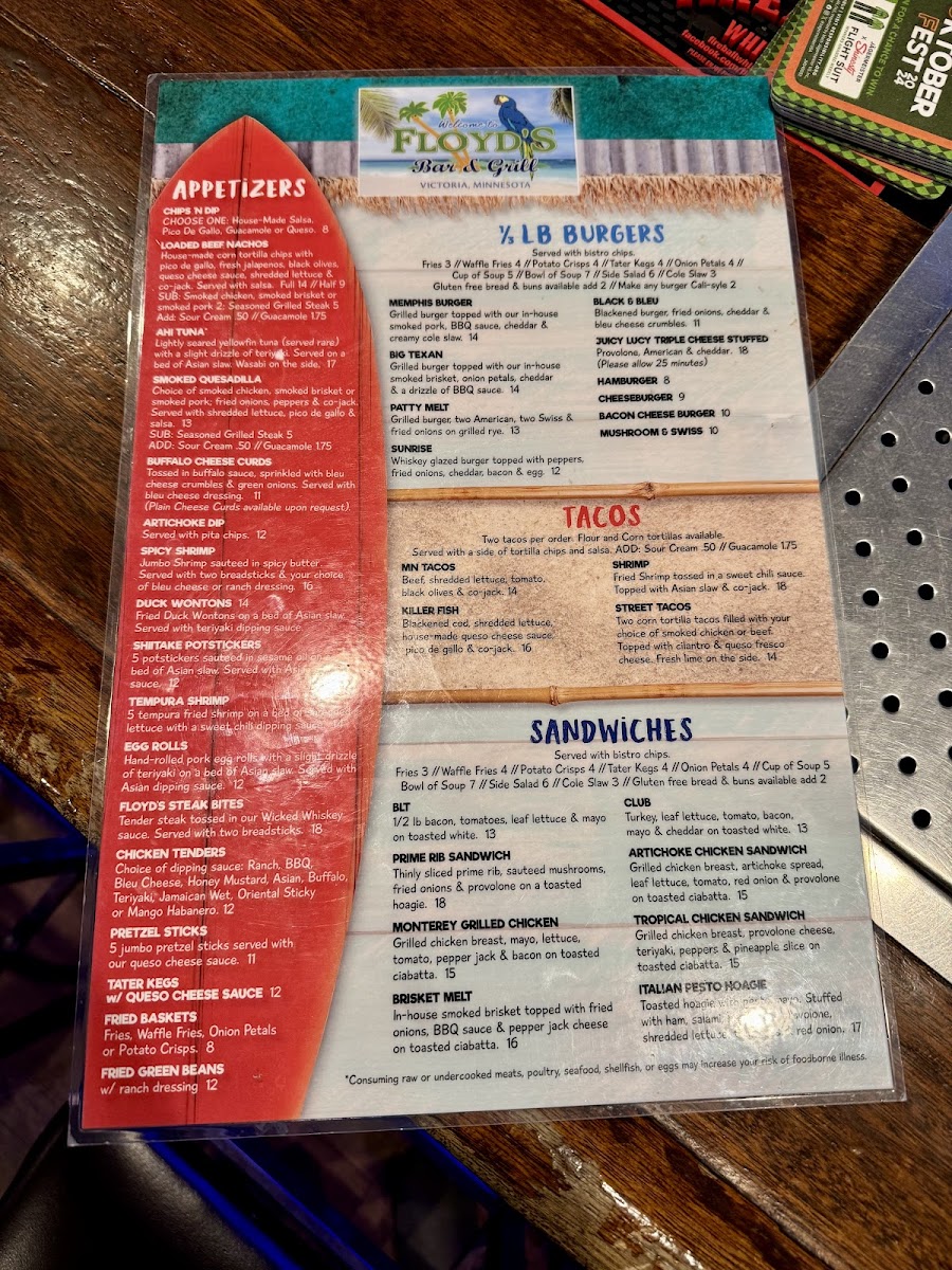 The menu offers a range of food and drink options suitable for casual dining and social gatherings. It is organized into several categories to help visitors find items according to their preferences.